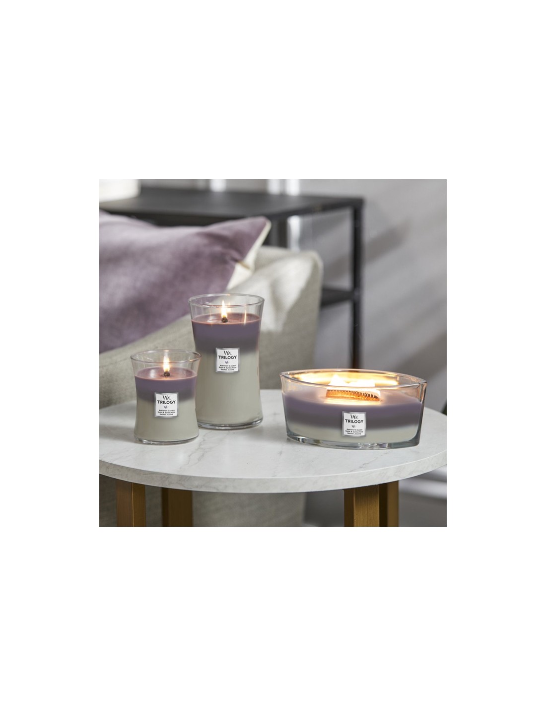 - Fue el debut de las velas Trilogy de WoodWick® que ofrecen innovadoras combinaciones Premium de fragancias. Cada vela Trilogy crea su única experiencia especial, con tres singulares capas de fragancia y color.